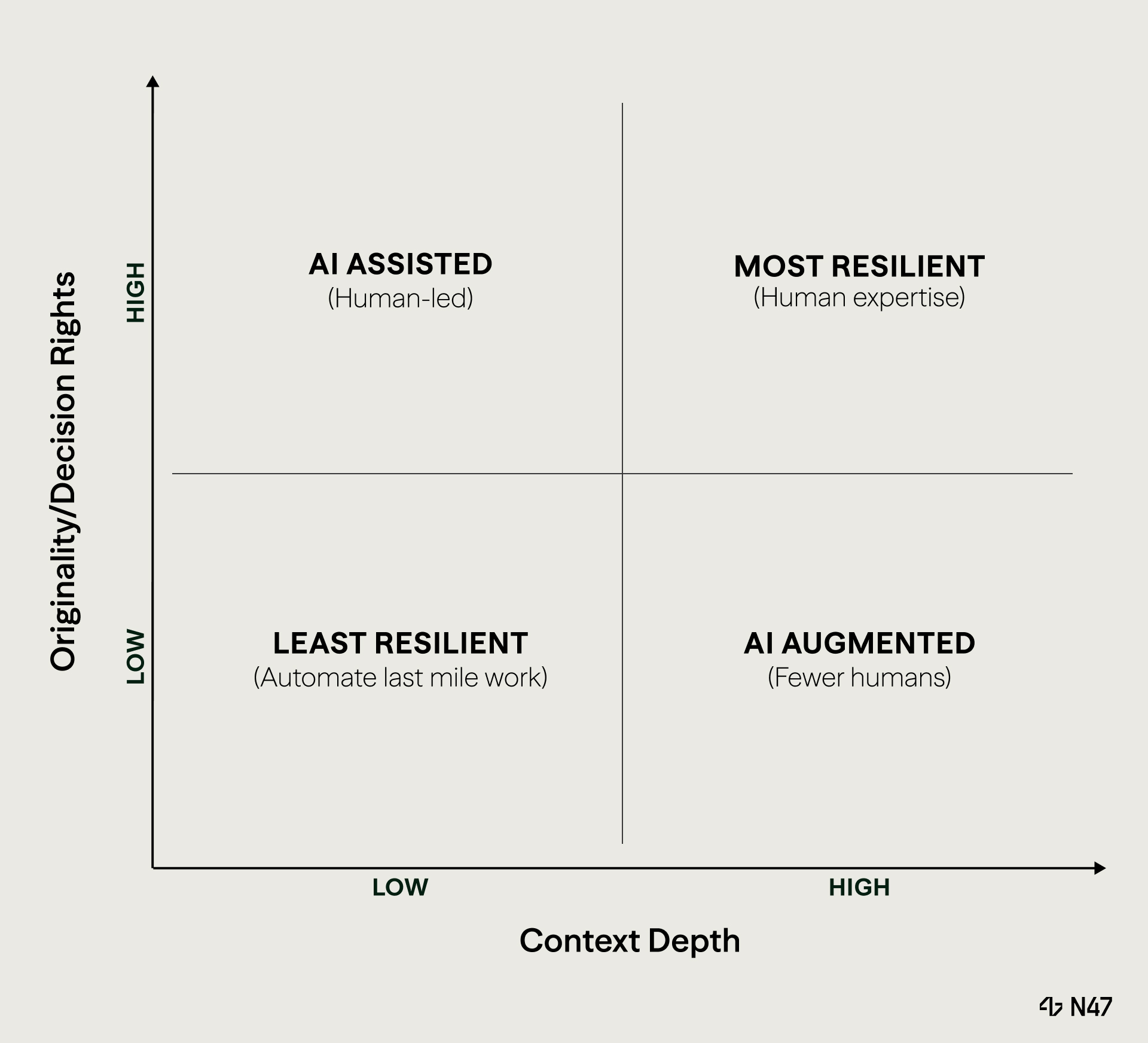 The framework below shows where different types of work sit based on context depth and decision rights.